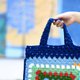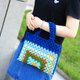 織片手袋玩得很,左拼右拼確實很美,但有時候也想簡約一點。靈光一閃,我們總是習慣把織片拼在一起,為甚麼不試試只用單塊織片呢?把一個大織片對折,一個簡單的手袋已經成型。