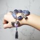 嚴選大器堇青石(稀有血點品種)隨型珠,搭配充滿吉祥寓意銀飾物:金剛鈴、金剛杵(平安、智慧)、如意、大象(智慧、太平有象),霸氣非凡。