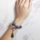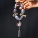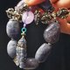 **1.圖上堇青石長約23mm,紫鋰輝古錢約15mm,金剛鈴、金剛杵長約32mm,流蘇綴飾(銀象+銀如意+紫鋰輝古錢+堇青石流蘇)長約78mm,整體手圍約16.5cm。**