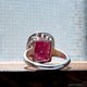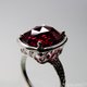ローズカットが施されたガーネットを、唐草と透かし模様の台座にセットしたリング。