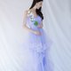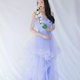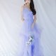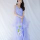 吊帶小V領設計,既不裸露又可以拉長比例,手臂薄紗部分既可以修飾,夏季色調加上裙襬部分的薄紗分層穿出小公主的活潑感,推薦用於婚禮或婚紗拍攝。