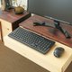 電腦桌上一定會擺放鍵盤與滑鼠。但一般的書桌難以保證有擺放的空間。但是這個桌子具有一個聰明的機能,就是可以擴大桌板空間。只要在需要時將抽屜背部的輔助桌板取出,如蓋上蓋子般放上去的話,就完成了輔助的桌板。因為手邊的空間變大,就能輕鬆擺上鍵盤。當然抽屜中的物品也不需要移動。