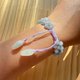 The bracelet is finished in a woven design with smooth round beads, giving it a textured and dimensional look.
