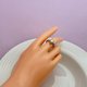 日本akoya珍珠稀有美好,不論是在迎光還是逆光狀態下都呈現出颯颯亮的珠光,被稱為小燈泡。紗織小姐甄選出8-8.5mm銀藍灰色渾圓的akoya真多麻,重工鑲嵌在滿鑲皇冠戒圈上,讓她在你的指尖悠悠的閃著銀藍灰色的光芒,會想起拿破侖送給約瑟芬王後的王冠。戒指設計為開口,可以適配你的不同需求。