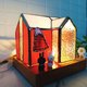 主要材質:鑽石花玻璃、彩色玻璃、焊錫、實木LED燈座(USB插頭開關線1.5米)圍巾小兔2隻