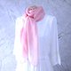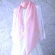 ふんわりとした質感や、パステルカラーのピンクがとてもフェミニンな印象のスカーフです。少し透明感もある、羽衣のような素材なので、ふわっと肩にかけていただくだけで、優しい気持ちに包まれそうな1点物です。