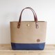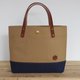 レザーハンドル帆布トートバッグ S size マッシュルーム×ネイビー