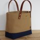 レザーハンドル帆布トートバッグ S size  マッシュルーム×ネイビー - 手提包/手提袋 - 棉.麻 卡其色