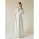 正面剪裁俐落端莊,背後則以柔美的垂墜設計為亮點,形成鮮明對比。