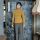 内側に折るのも首元がすっきりとしてお勧めです。年齢関係なく多くの方のベーシックとなれるセーターです。