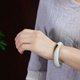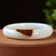 **〔 簡介 〕:一款非常精緻漂亮的和田玉帶皮籽料手鐲,圈口:55.2,非常有意境,雕工精緻,上身簡單大方,尺寸約:10.8*8.8mm,重:52.6克,