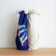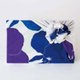 構圖特色:風呂敷特有的構圖,將花朵集中在對角線的右下角,使圖案充滿魅力。透過不同的包裹方式,可欣賞到藍色與灰色對比的美感變化。