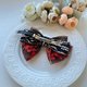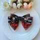 蕾絲上有釘珠、蝴蝶結中心選用質感和顯眼的造型合金吊飾做裝飾。