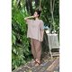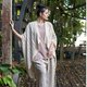 Minimal-style nude colored plus size cotton top for women. Oversized blouse made of soft and light weight cotton gauze in nude color, with short sleeves and pockets.