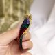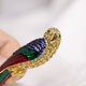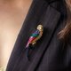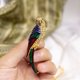 鮮豔華美的鳥兒,綠色萊茵石點綴的眼睛,給人一種溫煦的柔和感,別在胸前看來乖巧可人。