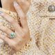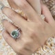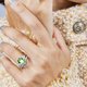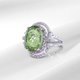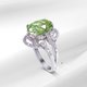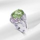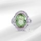 有著一顆引人注目的5.07ct綠色碧璽為主石,這顆含銅成分的綠色碧璽,散發出特殊稀有的綠色光澤,且透過精緻的切工,每一個角度都呈現出多層次的絢麗光澤。