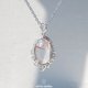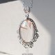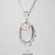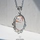 針状のリモナイトを内包するクォーツを、ボタニカルなイメージの透かし模様の台座にセットしたペンダント。