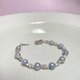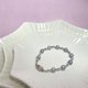 紗織小姐甄選出九顆6.5-7.5mm天然色日本海水真多麻,將其與銀珠交替相間連綴,由S925銀元寶扣連結成約18cm長的隔珠手鏈。日本海水真多麻稀有美好,通體銀藍灰色,表面呈現出難以名狀的炫彩色調,自然光下每一顆都分別呈現出各自的七彩光芒炫彩,皮光細膩,微瑕炫彩,似鏡面可照出人影,美得不可方物。