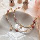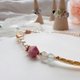紅紋石象徵穩定與愛,摩根石散發柔和能量,粉奧寶與貝珠相映成光,讓整體更添優雅氣息。