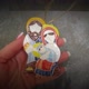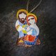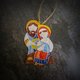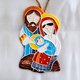 The Holy Family christmas ornament was made from white clay and decorated with glazes.