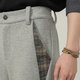 - 【異構】都市復古 空氣層格紋拼接彎刀衛褲/時裝運動褲