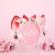 - Strawberry Kitten set Features: - 2,25 inches tall kitten shape ears - made of top quality faux fur - crystallized with Swarovski - metal hoops - strawberry charm - removable chains with strawberry pendants - fully wired and posable on the metal headband