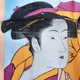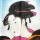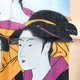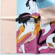 This vintage handkerchief is made of fine lightweight cotton with a smooth, thin texture. The print is based on the iconic woodblock by Japanese ukiyo-e master Kitagawa Utamaro (1753–1806), titled 「當時三美人」 (Tōji san bijin) – Three Beauties of the Present Day, from his celebrated bijin-ga (Pictures of Beautiful Women) series.