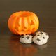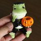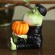 偽裝成科學怪人的青蛙擺飾。這是萬聖節季節的吉祥物,放在身邊,據說能讓它的小南瓜容器裝滿糖果。