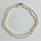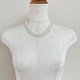 オールノットネックレスの特徴として、万が一、糸が切れた場合でも最小限で抑えられる点や、玉同士が密着していないので擦れあいにくく傷も付きにくい点、首回りにフィットしやすくなっている点等がございます。この仕様は特に海外で人気があり、比較的高品質アクセサリー類によくみられる仕様です。弊社の自社工場にて塗装したパールになります。品質の状態も維持されており、剥がれや大きな目立った傷などもございません。稀にピンホールや小さい凹み等が見られる場合がございますが、自社にて検品の上、品質に問題は無く許容範囲とさせて頂いております。