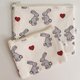 It is a good pouch for simple belongings or cosmetics. The charm is that a cute bunny and a heart are together.