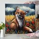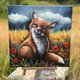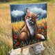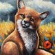 The unique painting of a fox baby in the flower field. The artwork is made with professional acrylic paints on a stretched cotton canvas. The plot is one of a kind.
