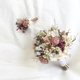 ● 使用太陽玫瑰做為捧花整體風格,其餘花材隨機搭配,附同款胸花一只。