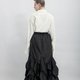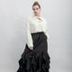 「RAVEN」系列靈感源自神話中的烏鴉——這一神秘生物在多種文化中兼具智慧、黑暗與未知的象徵意義。設計師郭瑋探究烏鴉在台灣魯凱族、北歐及希臘神話中的角色,並在本季作品中重新詮釋其形象。從羽毛的流動、骨架的結構到展翅瞬間,每一個細節都蘊含深厚文化底蘊,帶領觀者進入智慧與神秘交織的時尚對話。