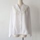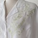 復古綠色刺繡領寬鬆歐美版型長袖白色古著襯衫-T069