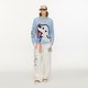 【設計說明:】小落肩毛衣/采用7針-單邊絨毛衣面料,織法疏密適中,壹側借綿羊毛天然纖維呈細膩絨毛,觸感柔潤蓬松。正面小狗提花和袖側骨頭提花呼應主題,增強整體協調感。後部創意愛心繡花,添加藝術與時尚氣息,細節精巧,風格鮮活。
