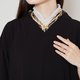正面簡約大方,易於搭配各種場合;後片細緻點綴的銀杏、葡萄、石榴與金木犀,讓造型多一份精緻驚喜。