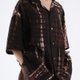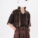 咖色手工蛇骨紋扎染的古巴領襯衫