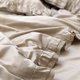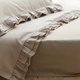- Latte Duvet Cover with Ruffles, Natural 100% Cotton Sateen Details: • This listing includes one duvet cover with ruffles that are on both sides along the length. • Soft Sateen, 100% Natural Cotton. • OEKO-TEX certified fabric (free of harmful chemicals) • Color in the picture - latte. Button closures are located along the width of the duvet cover.