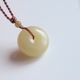 天然和田玉平安扣面包圈吊墜,新疆糖料,精美蜂蜜水色,玉質細膩,脂份厚,純手工雕刻,搭配精美手工繩,墜尺寸約19×9.5mm