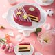 - 以法國進口的覆盆子和金箔妝點了亮麗的外觀,內餡以酸甜的百香果慕斯添加芒果香氣,搭配巧克力的綿密蛋糕體,清爽、酸甜馥郁的夏季風味,是款限定季節蛋糕!