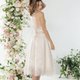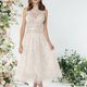 紫丁香(Lilac)代表初戀的感覺。此款洋裝佈滿了蕾絲,蕾絲有著如丁香的葉脈紋路穿梭在布料中,上面縫製了經典圓亮片,閃爍其中