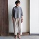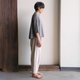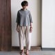 千鳥格織紋,熟悉舒適的純棉布感,高領合肩七分袖衫的簡約雅緻,利用背後2條摺線增加層次感,讓簡單線條自在舒適。