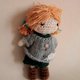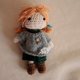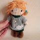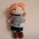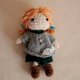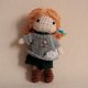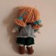 - 布棉花100%獨家的毛線娃娃。從設計到製作皆是, 16公分高的小小美娃娃,是送小女孩的絕佳禮物, 多層次穿搭造型,綠色連身短褲+灰色短衫,頭綁雙馬尾造型辮子娃娃,