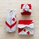 現代風格:紅白的對比色彩既優雅又摩登,能透過包裹動作,展現出「現代的祝賀形式」。