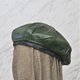 羊皮藝術家, 這是一款貝雷帽 ( baret cap ),台灣常稱畫家帽,早期為軍隊所使用,型式以整片羊毛氈壓製塑型而成,現以各種不同材質及多裁片製法流行於歐美時尚圈,是一種休閒的帽款, 這款貝雷帽是 8片式的寬體款式,帽體採用復古色澤紋路的羊皮,內裡採用特別設計的格紋純棉布料,輕薄、透氣、吸濕,可長久配戴;純棉內裡不會因為與頭髮磨擦產生静電而造成掉髮與頭皮不適。 因為夠寬的帽體,可以有多種戴法,變化出各種風格,男女均適合的帽款,搭配T-shirt、休閒襯衫、牛仔褲,或是不成套的西裝都可以突顯個人時尚風格。