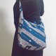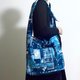 新款現貨/送子鳥兩用背包/兩面用/藍色牛仔併布印花 - 側背包/斜背包 - 棉.麻 藍色