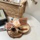 使用花材:日本大地農園索拉花1.永生玫瑰2.繡球花.肉桂棒.原木底座.松果或其他果實類花材