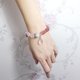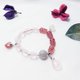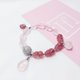 嚴選濃豔、清透的頂級鴿血紅草莓晶,精工雕製招財神獸貔貅(4只貔貅表事事順利)、心(心想事成),相佐星光粉晶鑽面隨形(富貴)、水滴(吉祥)、蘋果(平安)飾,主飾以施華洛世奇鑽鑲銀珠(表一元復始、萬象更新),每個角度都相當甜美迷人,滿溢著時尚美麗的戀愛風情,並有助事業、招桃花、好人緣之意。
