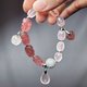 **1.圖上草莓晶貔貅長約15mm,星光粉晶水滴高約7.5mm,整體手圍約16cm。**