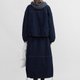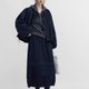 外套選用前短後長的小 A 字廓形,寬松容量更包容身形,克制的前後長短差,既拉長腿部比例又不易過短而不實穿。